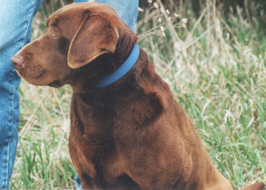 Hershey is a Certified Pointing Retriever. He is a chocolate male and weighs 70lbs. Hershey is the definition of the type of lab our Kennel desires to produce. He is all business in the field, yet lovable and gentle at home and around our family. Hershey's breeding career is over but his accomplishments will never be forgotten. Hershey has produced 4xGMPR, HRCH, MH, QAA Rooster, GMPR Rachael SH, GMPR Gator SH, APR Auggie JH, MPR Jedi, SH multiple CPR's and his latest accomplishment his grand daughter Trinity will be working towards big time titles!!. Don't overlook his daughter CPR Flo either for passing along a great bloodline!, see our litters page for Flo breedings.